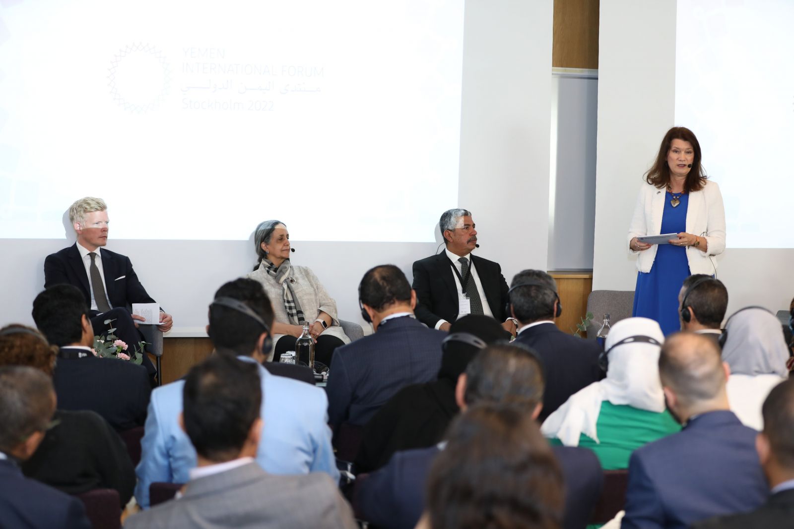 وشهدت الجلسة الافتتاحية للفعالية، مشاركة كل من وزيرة خارجية السويد آن لينده، والمبعوث الأممي الخاص إلى اليمن، هانس غروندبرغ، والوزيرة والدبلوماسية السابقة أمة العليم السوسوة و ورئيس الوزراء السابق خالد بحاح.