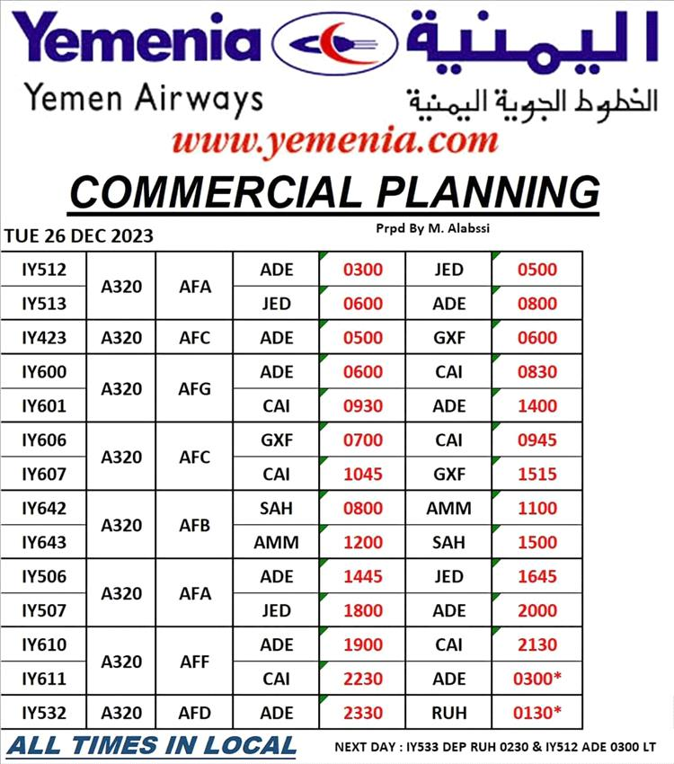 وننشر لكم جدول مواعيد رحلات "اليمنية" ليوم الثلاثاء والتي جاءت كالتالي: