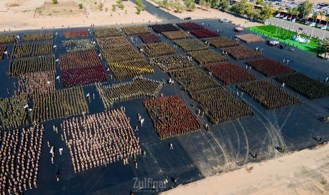 تداول نشطاء على وسائل التواصل الاجتماعي صورة لقيادي من جماعة الحوثي في حفل الاستعراض السنوي للحشد الشعبي العراقي المدعوم من إيران.