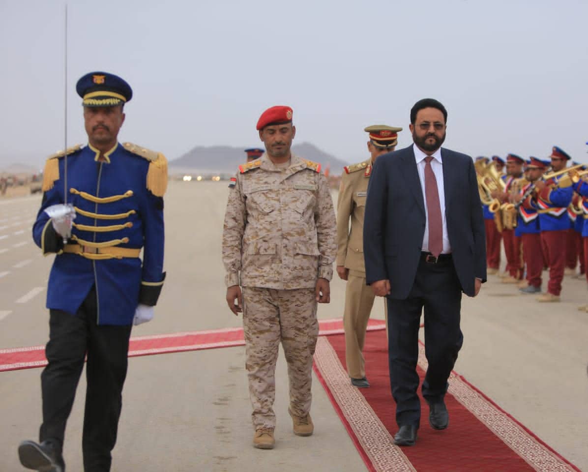 وفي العرض العسكري الذي حضره عوض مجلس القيادة الرئاسي اللواء سلطان العرادة، ورئيس الحكومة معين عبدالملك، ورئيس هيئة الأركان العامة في الجيش الفريق صغير عزيز، وعدد من الوزراء والقيادات العسكرية والأمنية، قدمت وحدات من مختلف المناطق العسكرية والأجهزة الأمنية عروضا مهيبة، تعهدت خلالها بالحفاظ على مكتسبات الثورة، ومضيها في معركة استعادة الدولة من الانقلاب الحوثي.